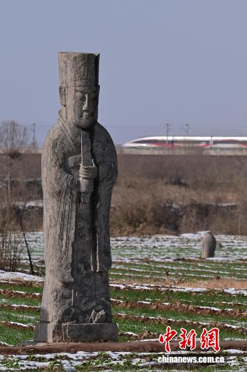 河南巩义宋陵冬景上新 小麦、初雪、石像生同框 2025-12-16 15:00